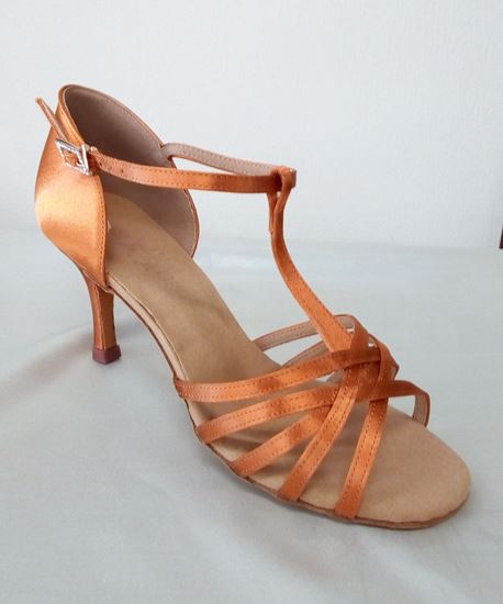 This is a great latin sandal made of copper. Very stylish, with 3 inch slim heel, suitable for competitive dancing. Few sizes left, call for availability.